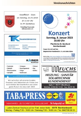 Vereinsnachrichten Kesselfl eisch - Essen am Samstag, 21.01.2023 ab 11:30 Uhr im FF-Gerätehaus Freiwillige Feuerwehr Adlmannstein e.V. B16 aktuell Dezember 2022 - 23 -